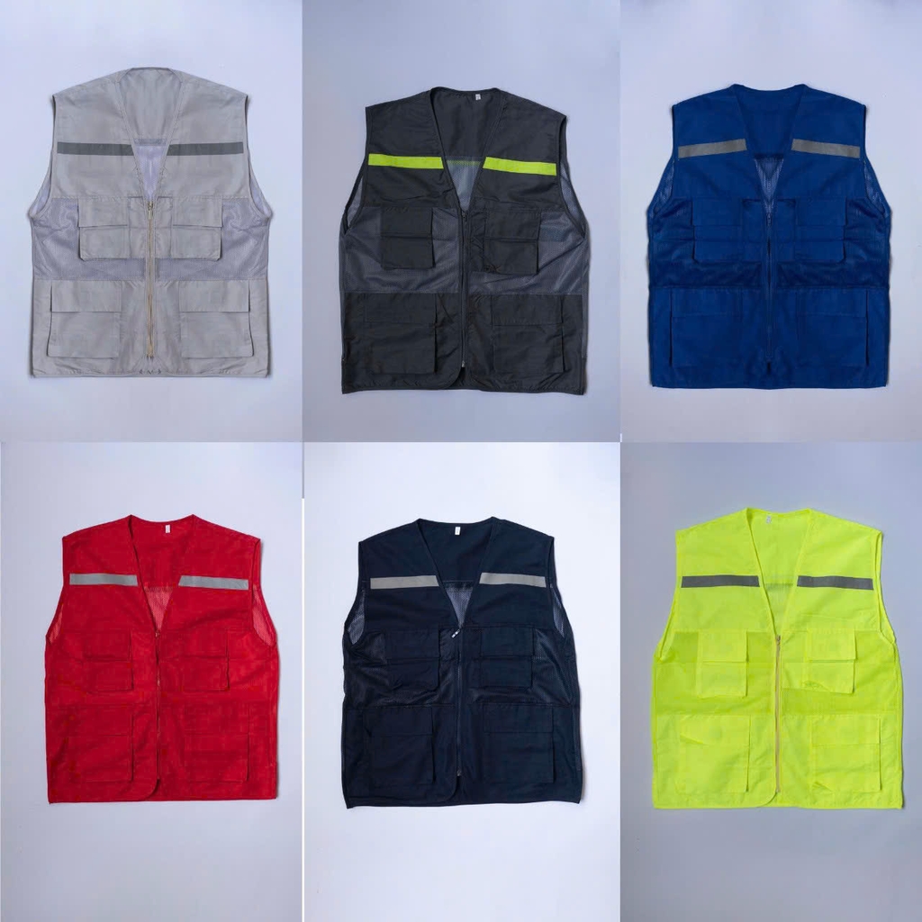 Áo gile phản quang bảo hộ lao động vải gió, dành cho kỹ sư, công nhân công trường, in đồng phục theo yêu cầu